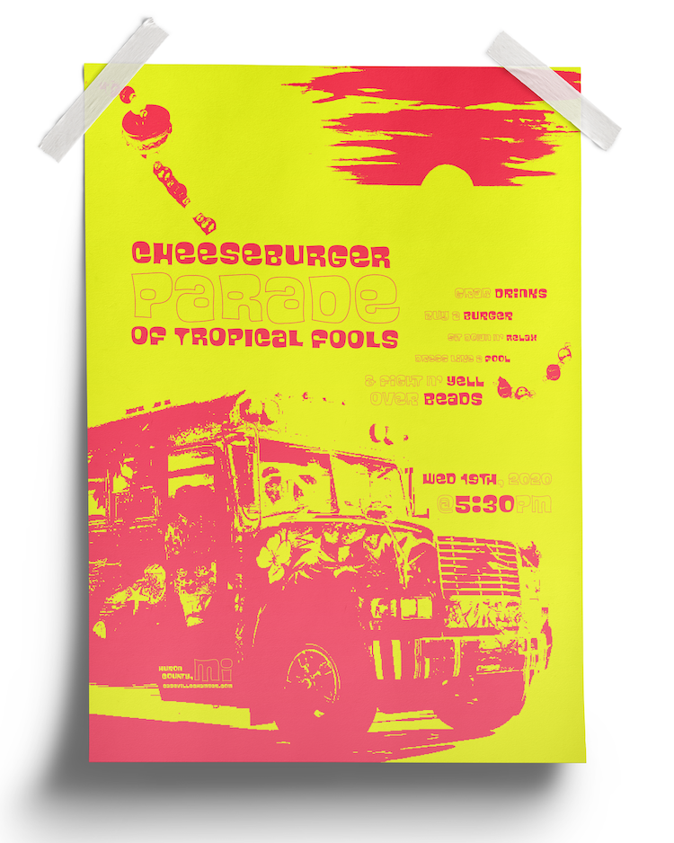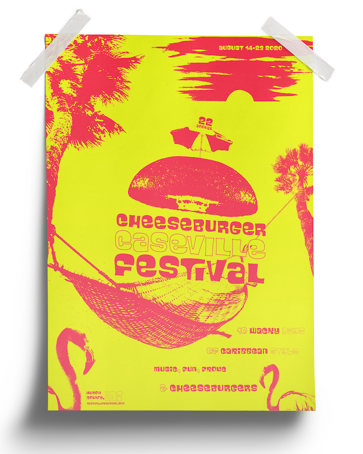 Two poster series of a Michigan festival, the Cheeseburger In Caseville Festival. The first poster is of the main festival and the second is of the popular Cheeseburger Parade of Tropical Fools.